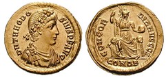 A deusa Vitória tinha muitos templos na Grécia, Itália e Roma. É quase sempre representada com asas, segurando numa das mãos uma coroa de louro, e na poutra uma palma.